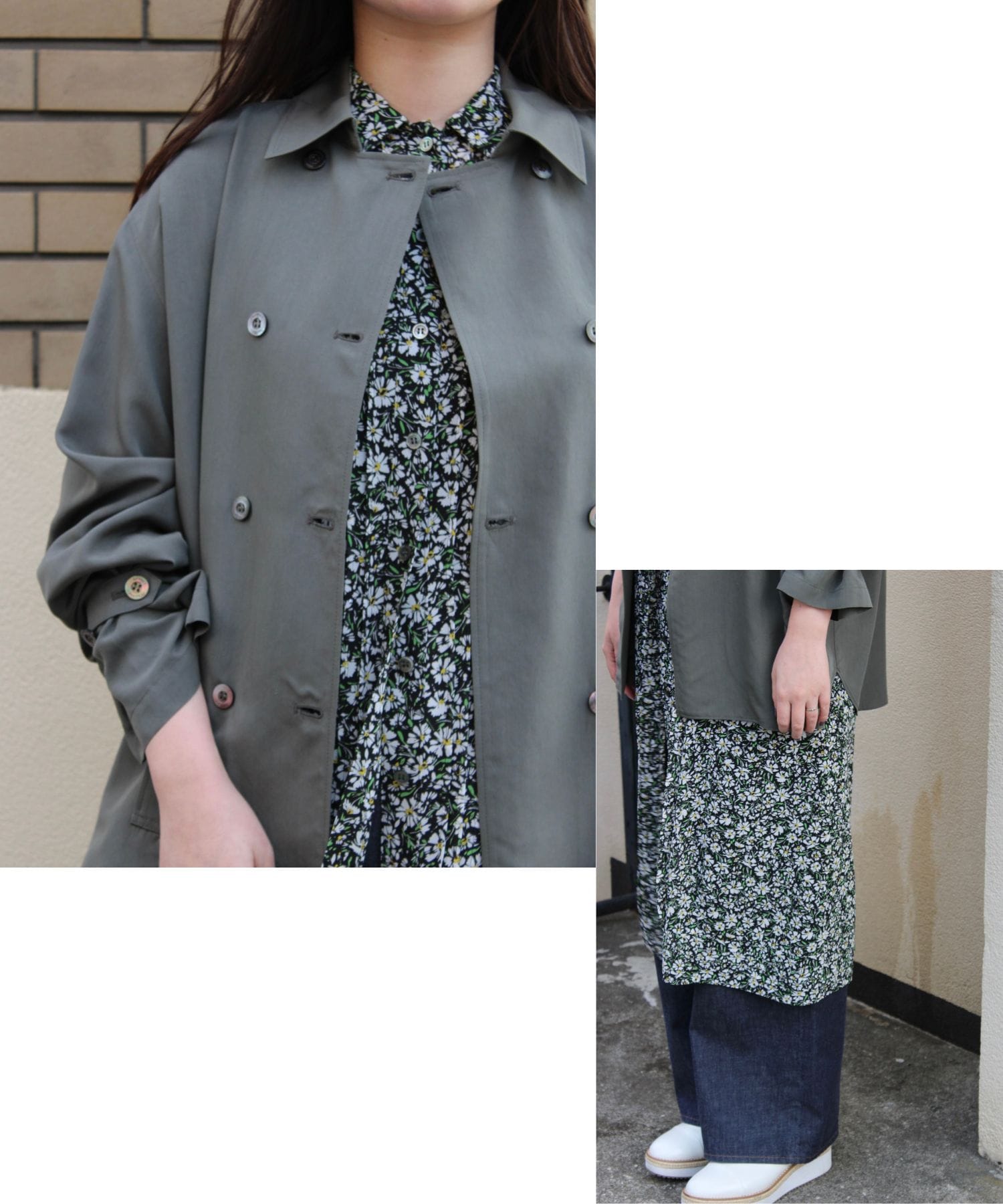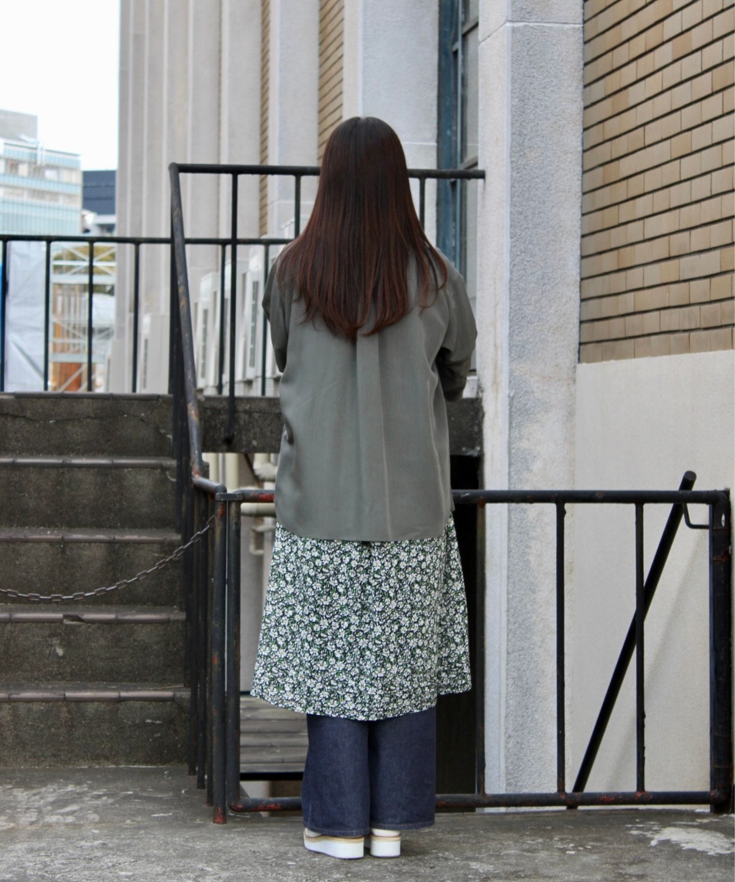 レイヤードスタイルにも活躍するデニム。花柄のワンピースは甘く見えがちなのでかっこよく見えるようにしてみました。