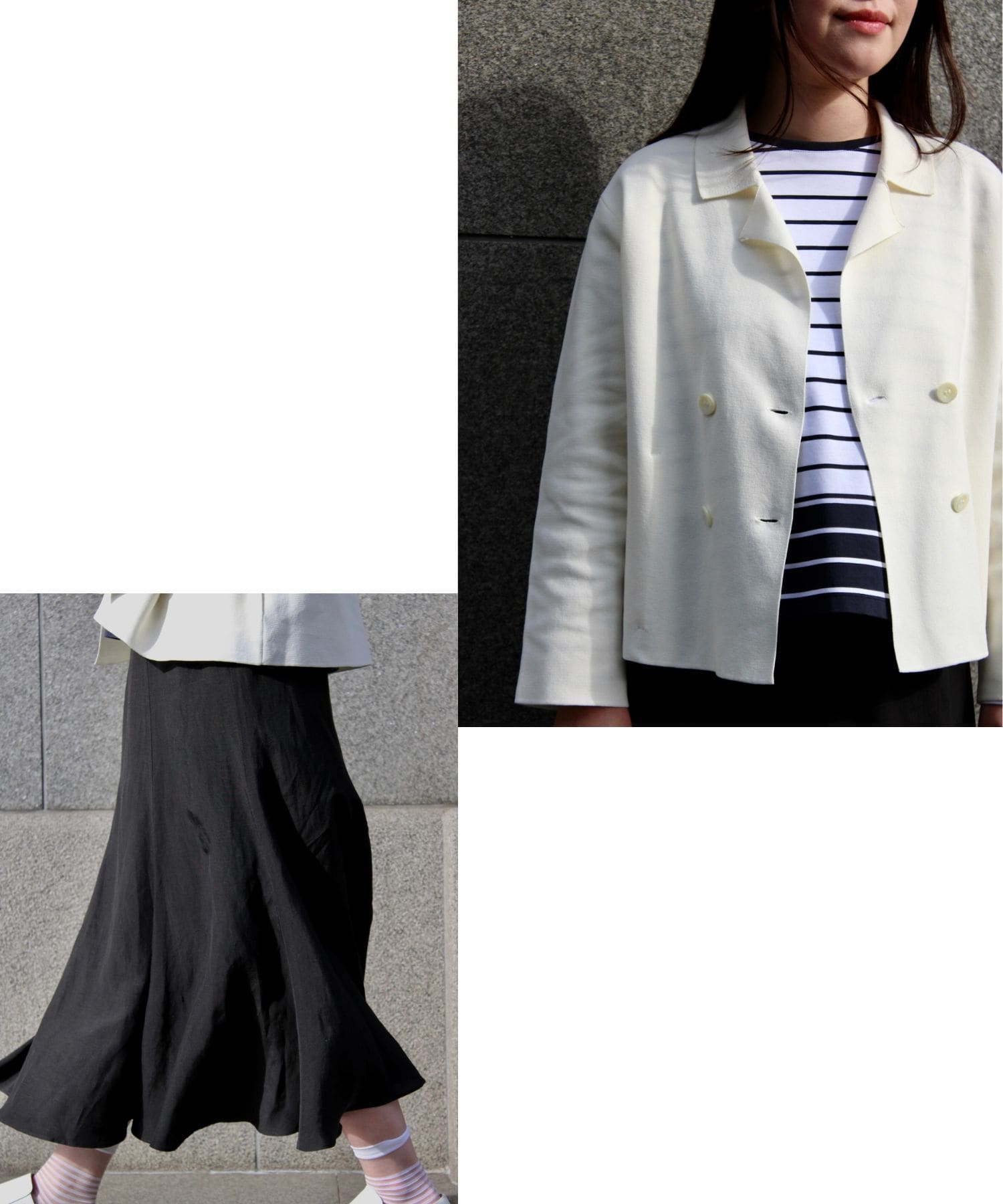 ジャケットでもニット素材なので、気張らずに着られるところ。一枚あると絶対に助かるアイテムだと思ったので選びました。