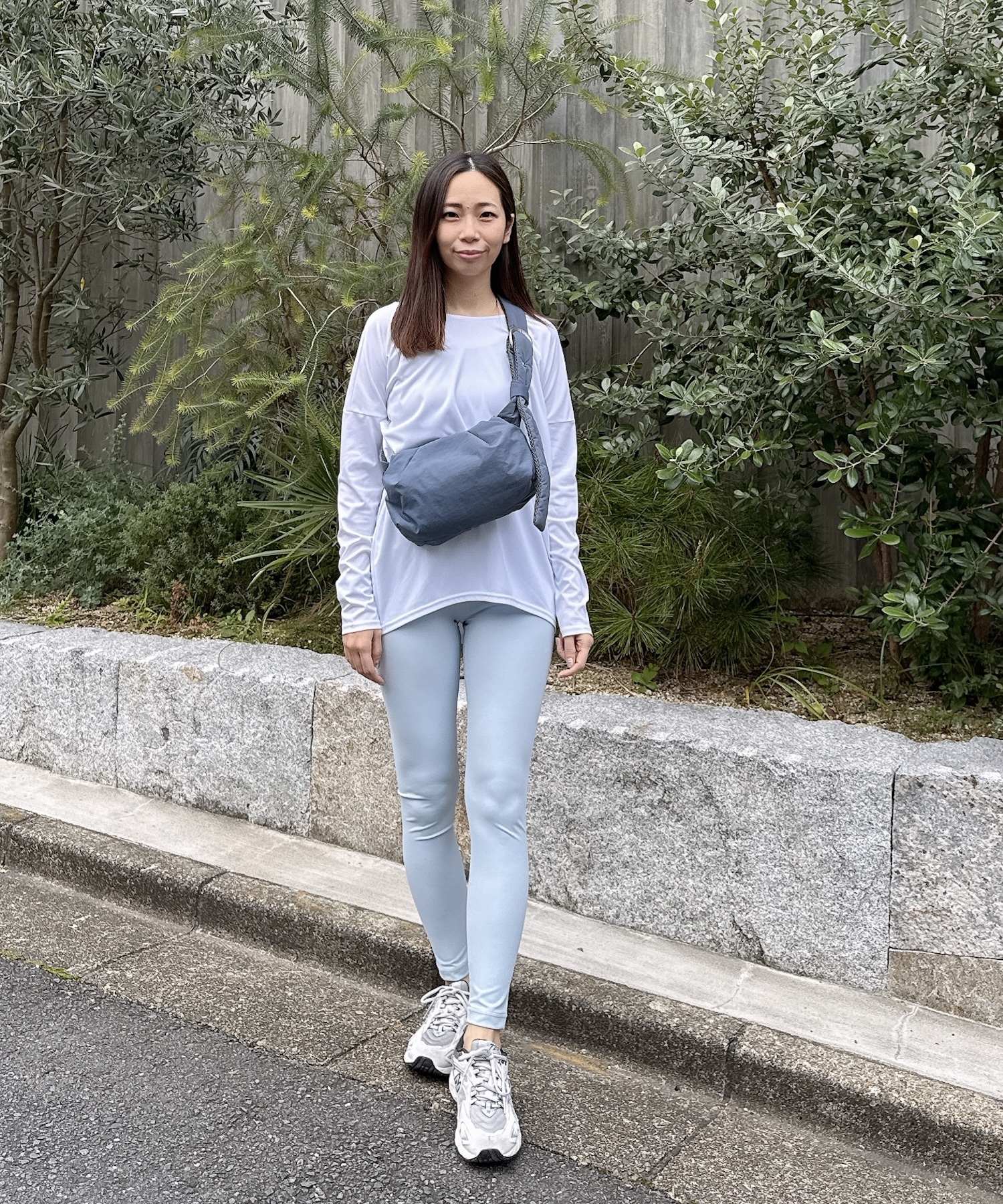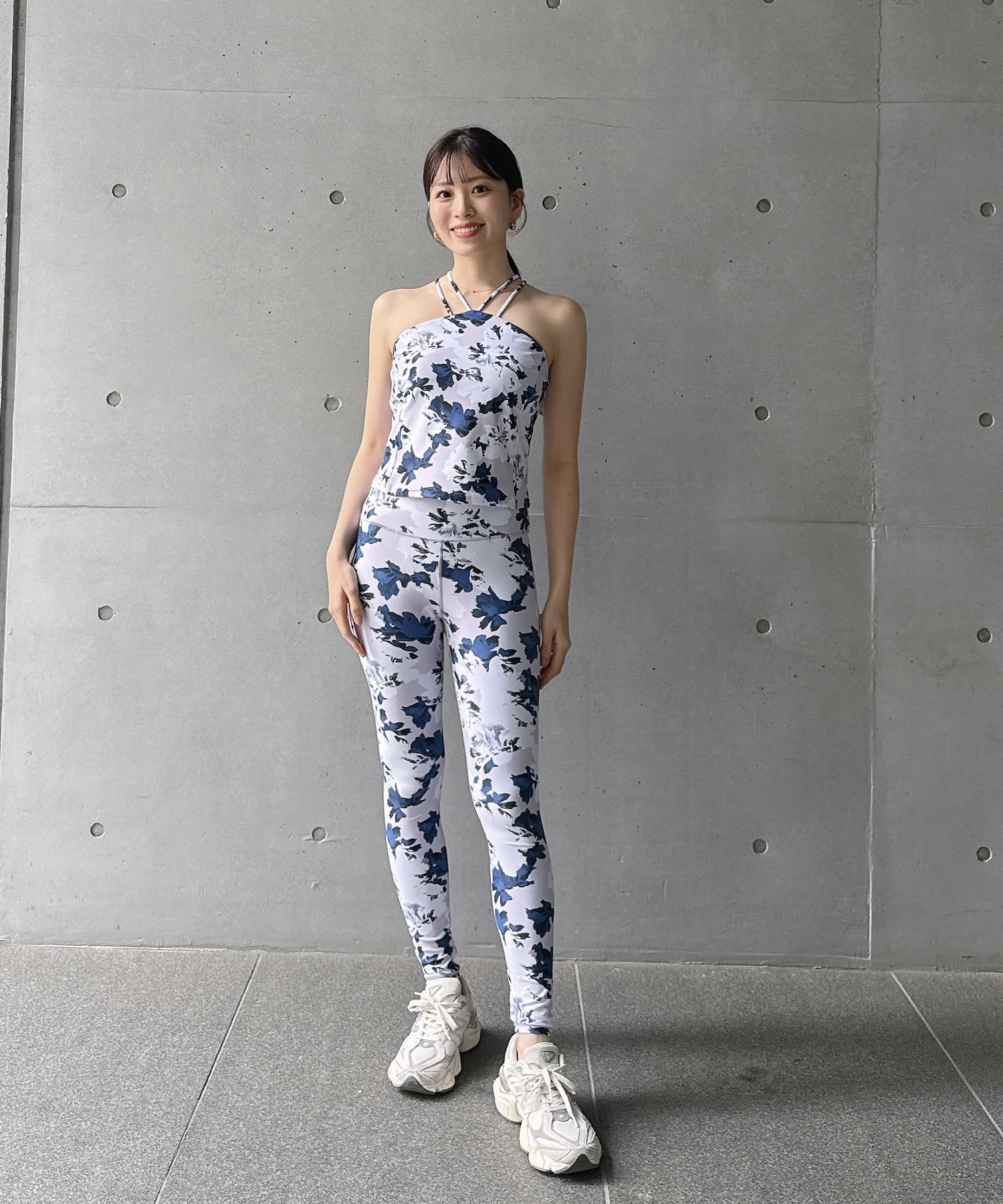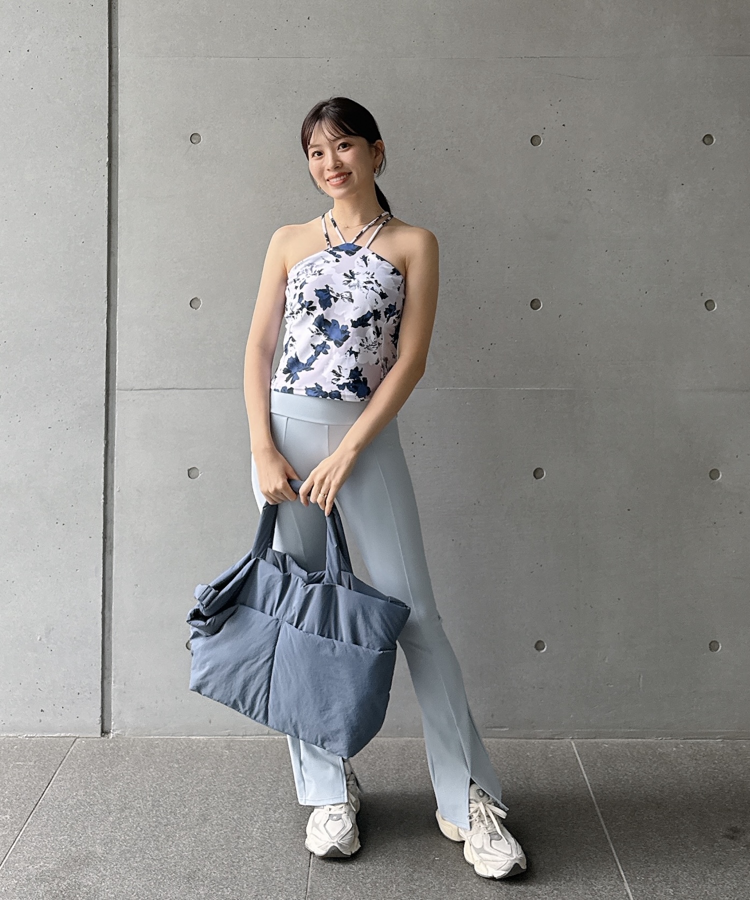 ニュアンスブルーでまとめた、爽やかさと洗練感を兼ね備えたワークアウトスタイル。