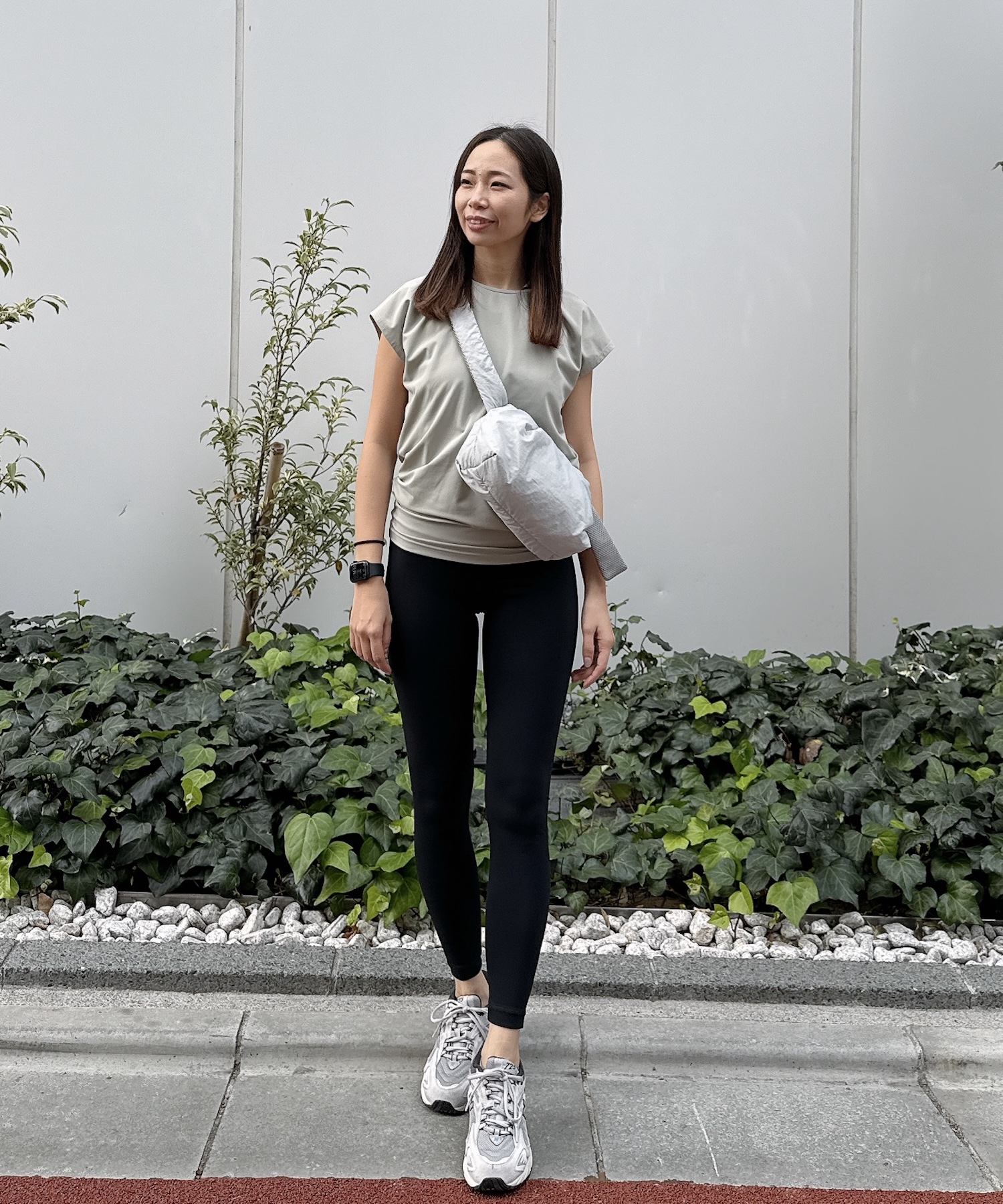 コンパクトなボディバッグを合わせれば、ヨガ帰りやワンマイルのお出かけにも対応できます。