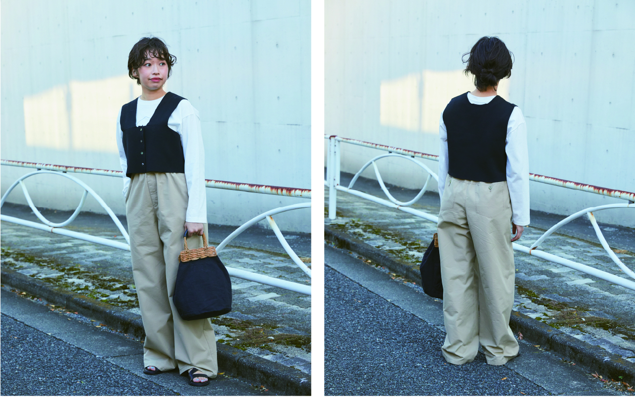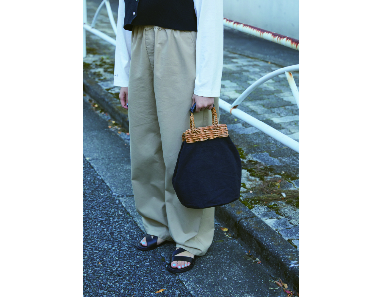 夏らしい雑貨はベストに合わせブラックをセレクト。