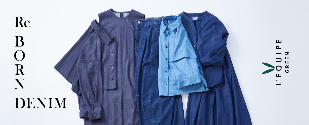 植物由来の再生繊維を使用した ”デニム” をメインに提案するコレクション。