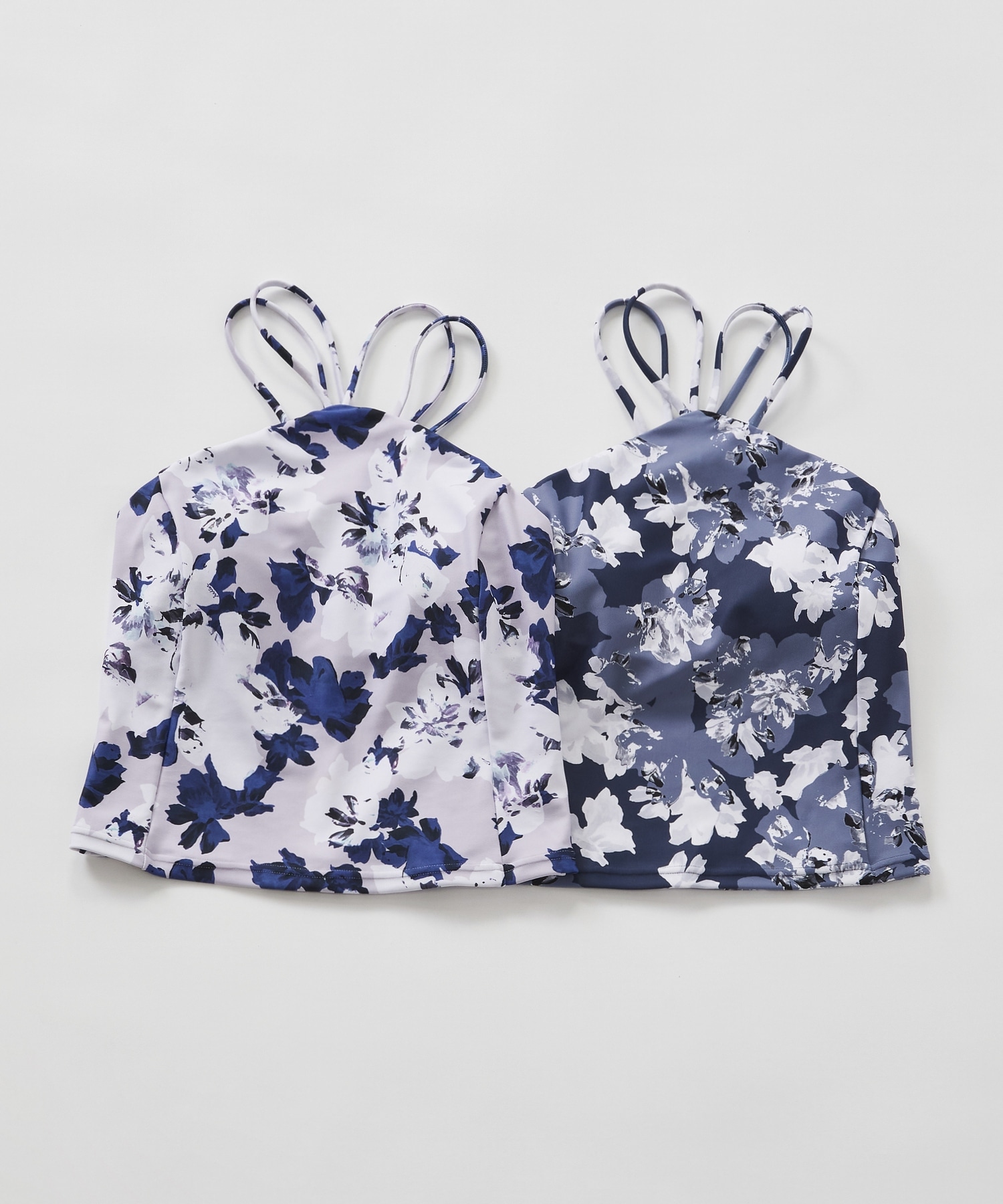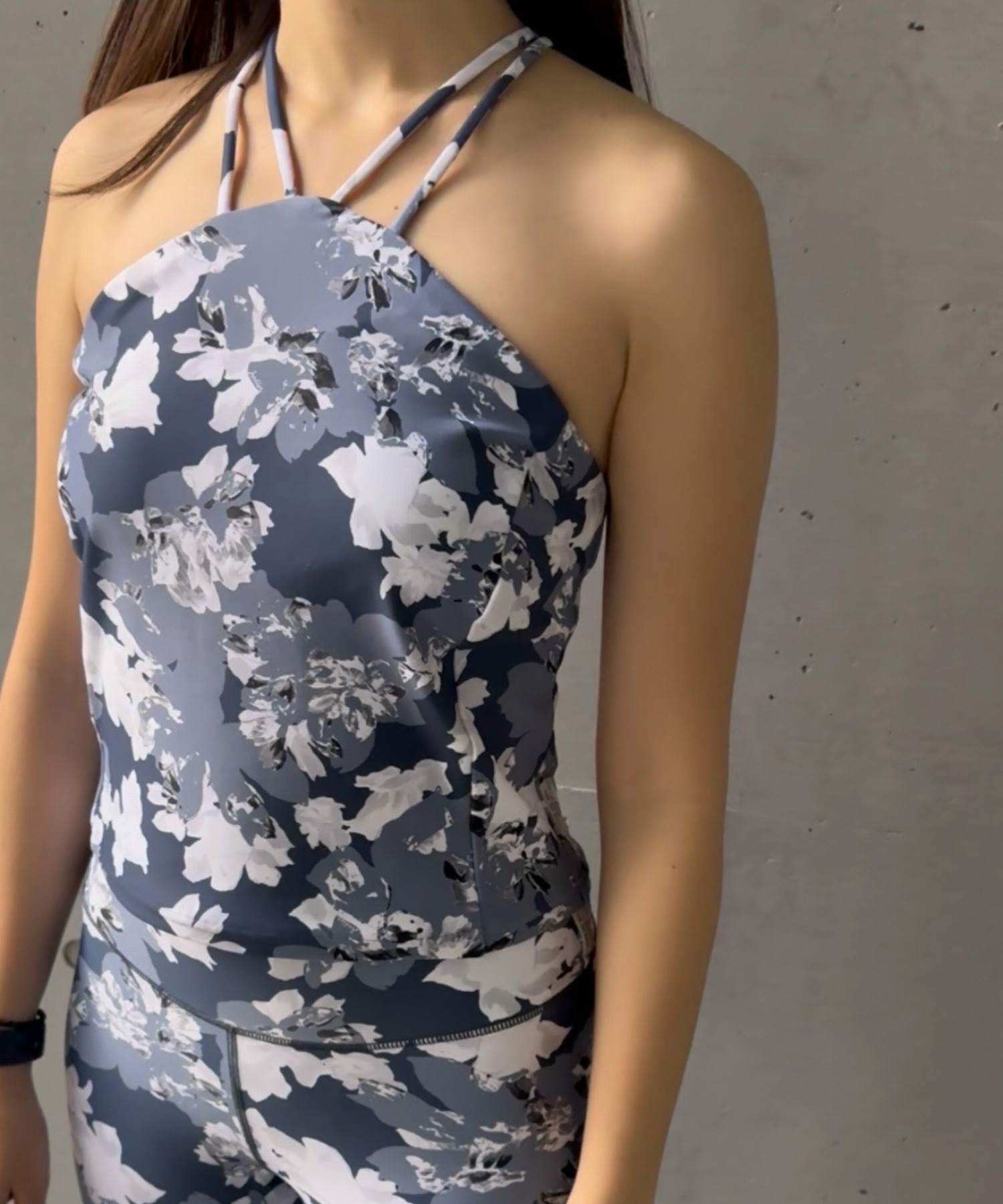 オリジナルのフラワープリントが目を引く、ホルターネックデザインのトップス。