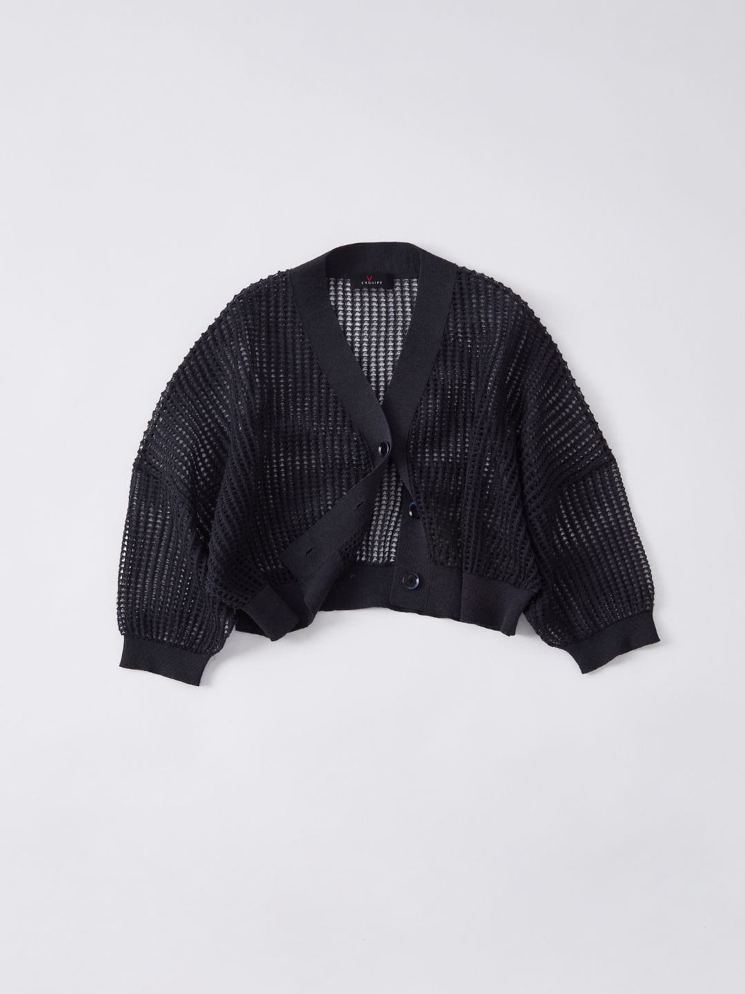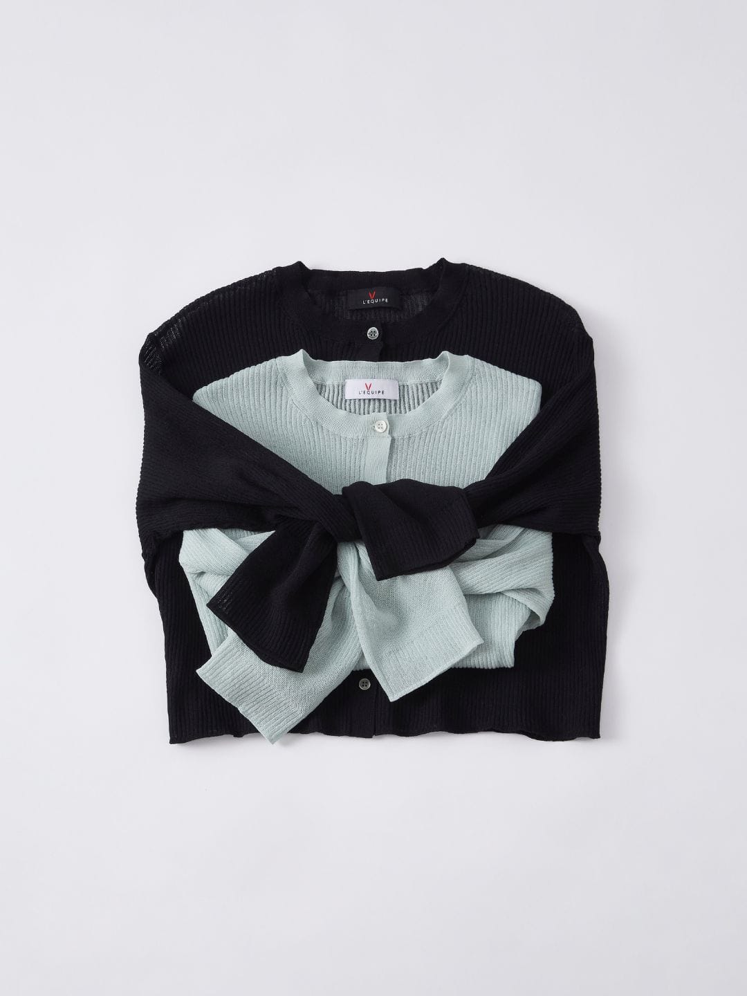 ポリエステル混で軽く、程よいフィット感がキレイなカーディガンです。しわになりにくいのでクーラー対策など持ち運びに便利です。(まる)